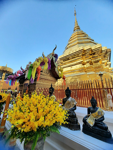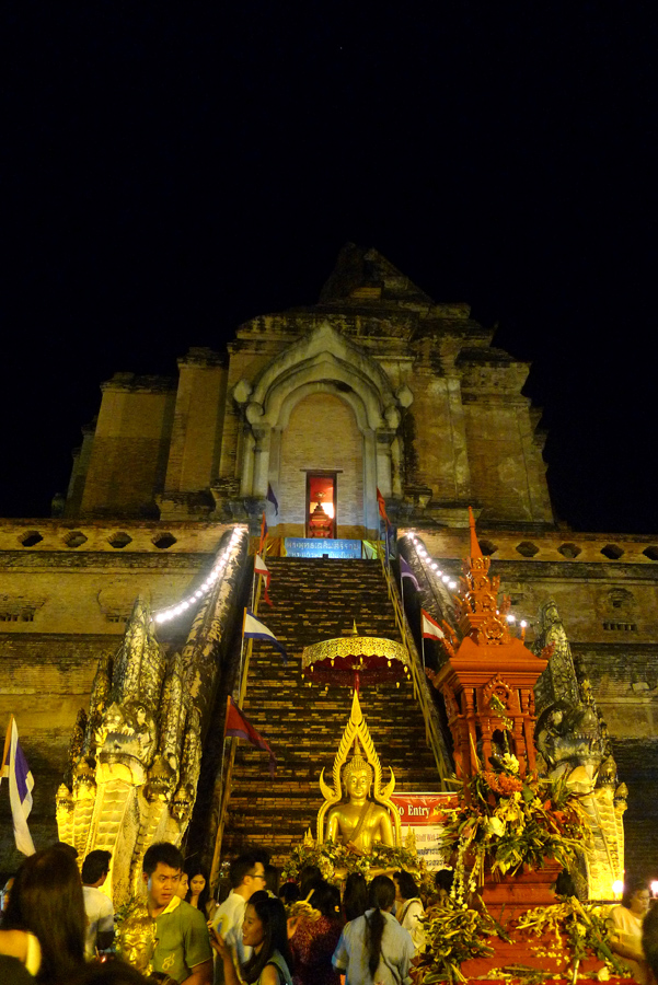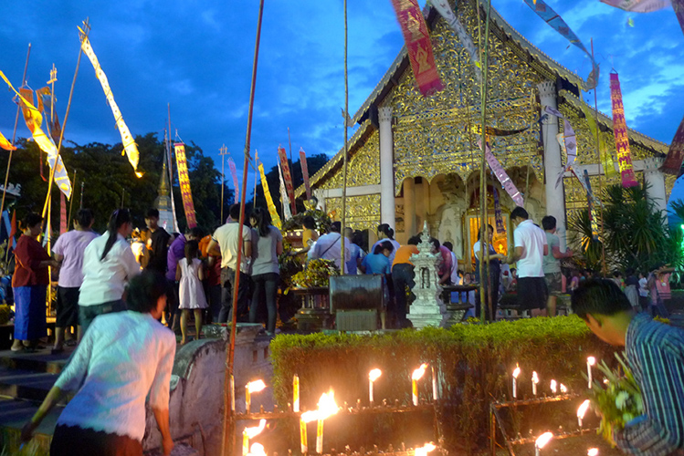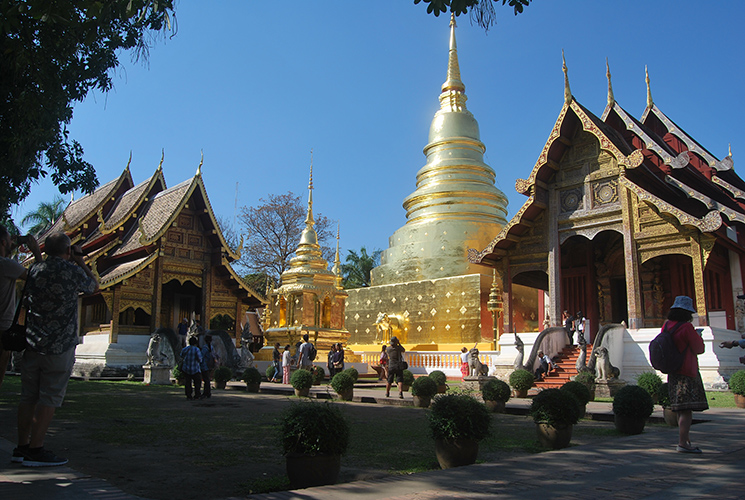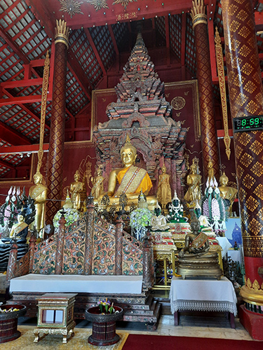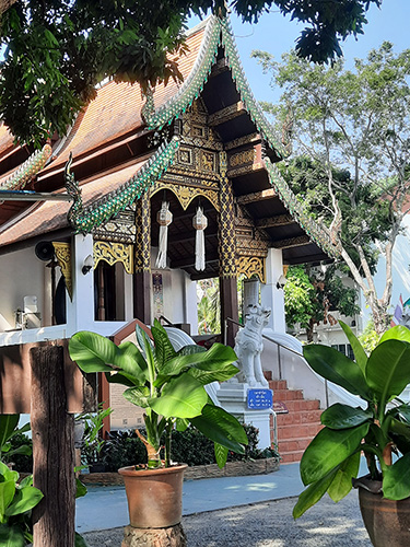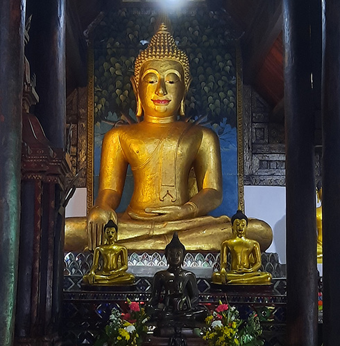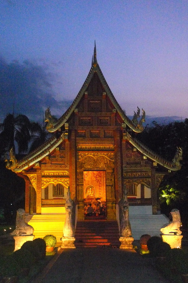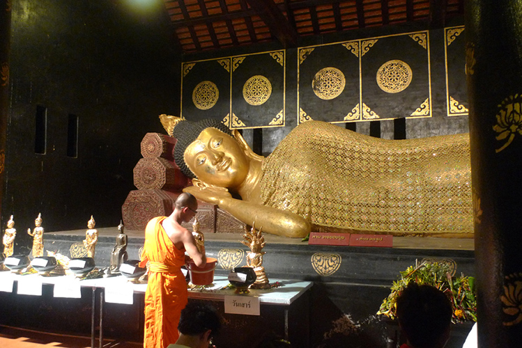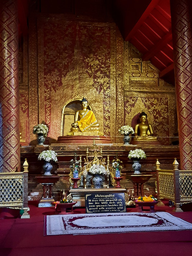 According to a legend, the Phra Singh Buddha is based on the Lion of Shakya image which was once housed at the Mahabodhi Temple in Bodhgaya. It is thought the Phra Singh travelled to Chiang Mai via Sri Lanka, Nakhon Sri Tammarat and Ayuthaya. Each Songkran– the Thai New Year in mid April, the Phra Singh is brought out in procession. This is a time when locals come out to cleanse sacred Buddha images, pay respects to elders, and to also receive blessings of water. The more contemporary tradition of Songkran these days is a 5-day water throwing party which begins around the 15th of April.