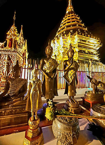 Dating back to 14th century, a legend tells of a white elephant carrying a sacred relic found its final resting spot where the temple was the built. The actual road leading up the mountain was built in 1935 through the efforts and supervision of Khru Ba Srivichai, Chiang Mai’s most revered monk. Driving to Doi Suthep you will also pass by Chiang Mai University and the Chiang Mai Zoo. At the foot of the mountain, a shrine is dedicated to the Khru Ba where locals stop to pay respects.