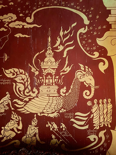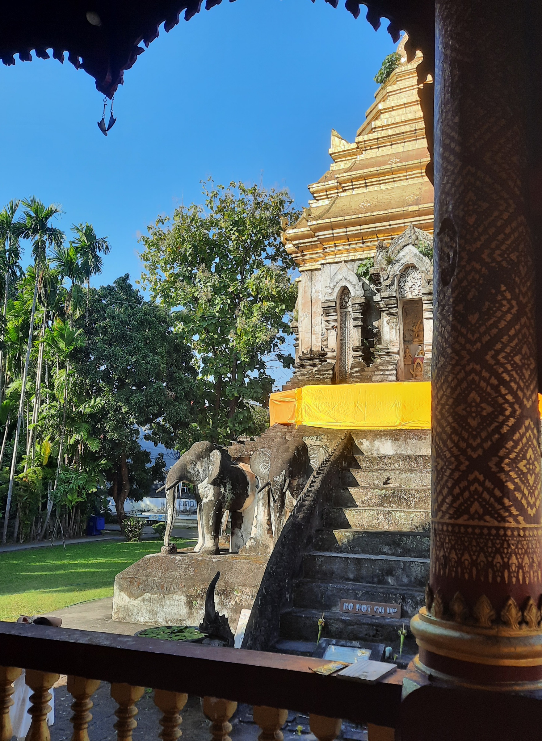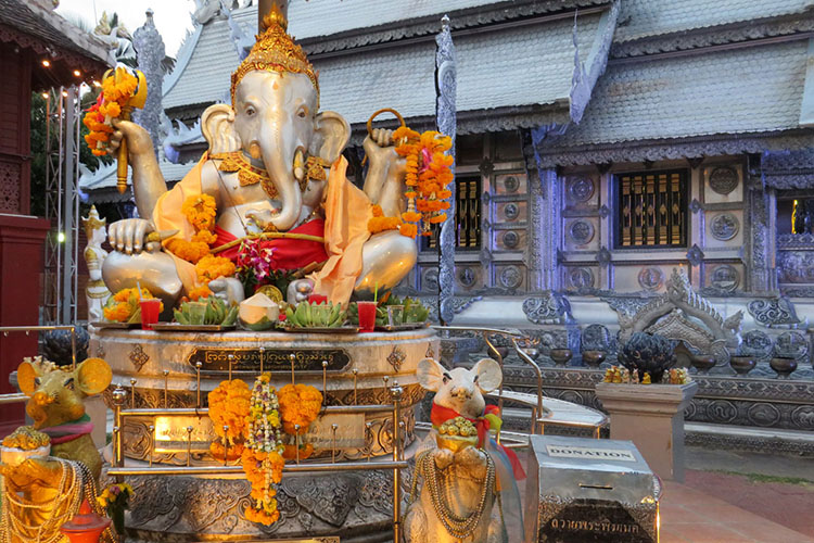 Wat Chiang Man – the first royal temple built by King Mengrai in 1296. The people of Chiang Mai have held a deep faith in unseen powers, worshipping ancestors and guardian spirits of land and nature. Brahmanism blended rituals and ceremonies for auspicious occasions- including the worship of Hindu deities, seeking protection, peace and prosperity. Garudas, nagas and of course, elephants, adorn the temples. The stupa at Wat Chiang Man is surrounded by 15 guardian elephants.