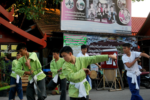 Traditional ethnic Shan sword dancers at Wat Sri Suphan.