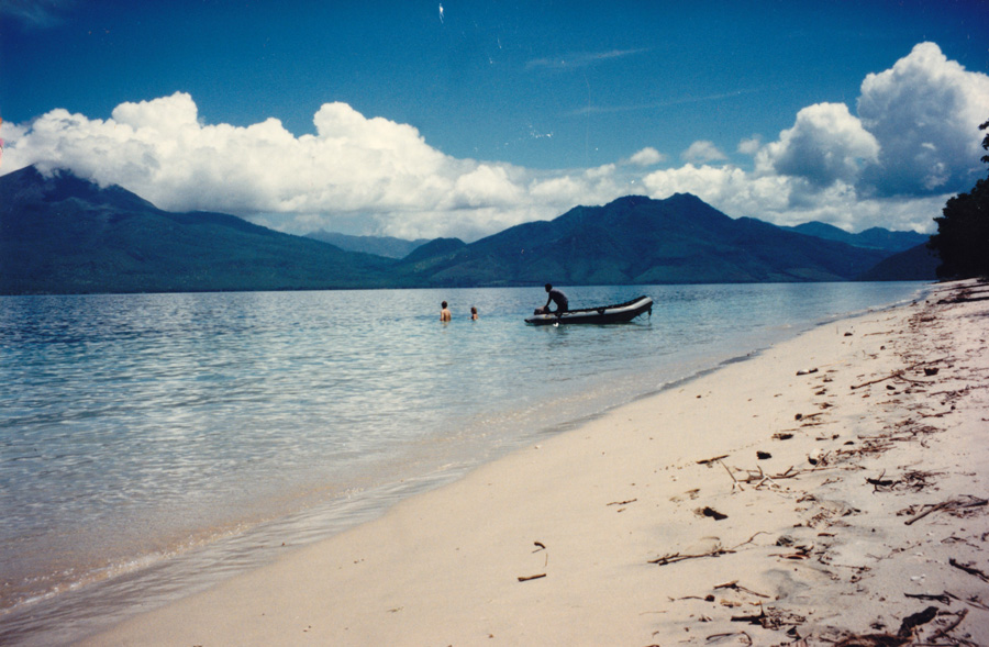 One of these days I may get around to scanning some more old photos of these wonderful past trips, but below are a few including this black and white photo of a village welcome on the island of Timor: